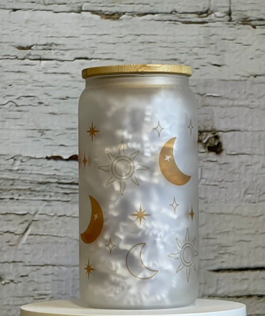 Moon and Stars | 16oz Durable Frosted Glass Can Tumbler | Shop Now